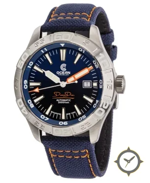 A Dive watch with a bold 44.5mm presence on the wrist, crafted from stainless steel featuring a navy dial with a unique sunburst gloss finish.
