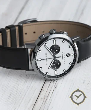 A Minimalist watch with a versatile 39mm case, that suits most wrists, crafted from stainless steel featuring a white dial with a unique matte lacquer finish.