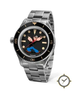 A Dive watch with a vintage-inspired 37mm case, crafted from stainless steel featuring a black dial with a unique matte finish.