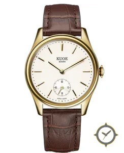 A Dress watch with a versatile 39mm case, that suits most wrists, crafted from gold featuring a white dial with a unique smooth finish.