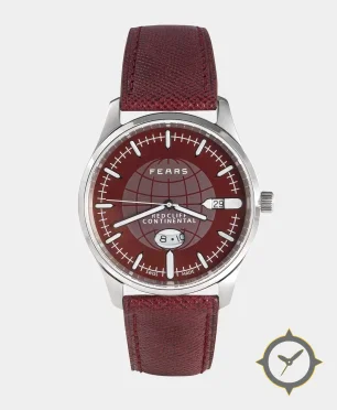 A Pilot watch with a versatile 38.5mm case, that suits most wrists, crafted from stainless steel featuring a crimson dial with a unique glossy lacquer finish.