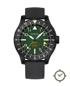 A Pilot watch with a vintage-inspired 35.5mm case, crafted from stainless steel featuring a green dial with a unique sunburst/gradient finish.
