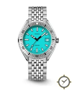 A Dive watch with a bold 46.5mm presence on the wrist, crafted from stainless steel featuring a turquoise dial with a unique matte finish.