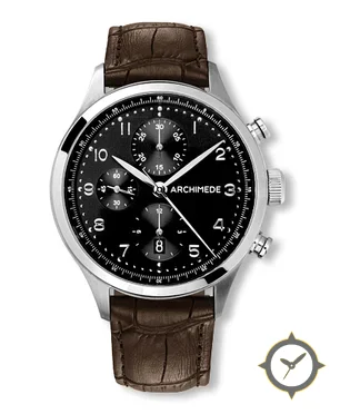 A Chronograph watch with a bold 45.5mm presence on the wrist, crafted from stainless steel featuring a black dial with a unique glossy finish.