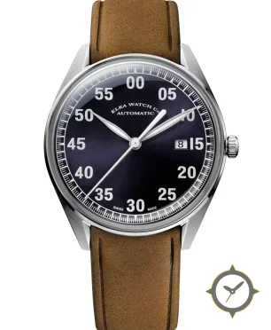 A Pilot watch with a vintage-inspired 33mm case, crafted from stainless steel featuring a navy dial with a unique sunburst / radial finish finish.