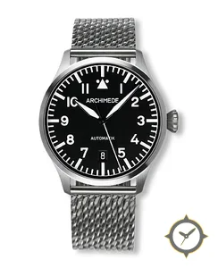 A Pilot watch with a vintage-inspired 36mm case, crafted from stainless steel featuring a black dial with a unique matte finish.
