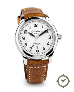A Pilot watch with a bold 42mm presence on the wrist, crafted from stainless steel featuring a white dial with a unique grained finish.