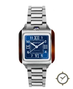 A Dress watch with a bold 41.5mm presence on the wrist, crafted from stainless steel featuring a blue dial with a unique guilloché center with glossy lacquered outer track finish.
