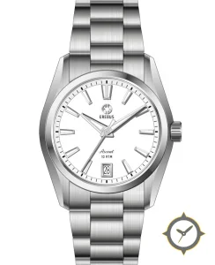 A Dress watch with a vintage-inspired 29mm case, crafted from stainless steel featuring a white dial with a unique lacquer finish.