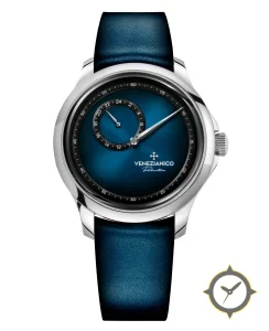 A Dress watch with a vintage-inspired 32mm case, crafted from stainless steel featuring a blue dial with a unique sunburst gradient (fumé) finish.
