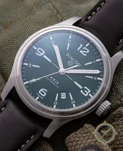 A Field watch, crafted from stainless steel featuring a green dial with a unique matte finish.