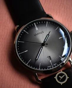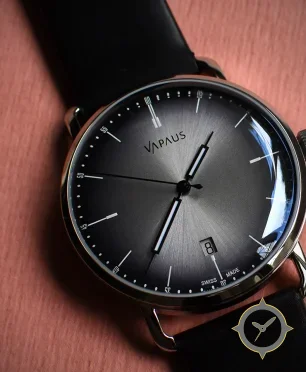 A Dress watch with a versatile 38.5mm case, that suits most wrists, crafted from stainless steel featuring a gray dial with a unique sunburst finish.