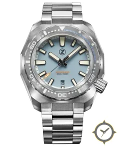 A Dive watch with a versatile 38.5mm case, that suits most wrists, crafted from stainless steel featuring a turquoise dial with a unique matte finish.