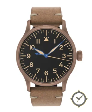 A Pilot watch with a bold 47mm presence on the wrist, crafted from bronze featuring a black dial with a unique matte finish.