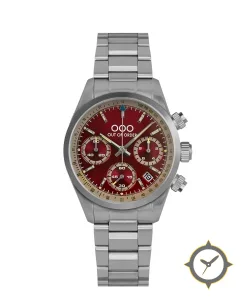 A Chronograph watch with a bold 45mm presence on the wrist, crafted from stainless steel featuring a red dial with a unique sunburst finish.