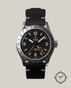 A GMT watch with a bold 47mm presence on the wrist, crafted from stainless steel featuring a black dial with a unique matte finish and a true GMT complication for tracking a second time zone.