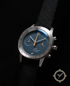 A Chronograph watch, crafted from stainless steel featuring a blue dial with a unique matte finish.