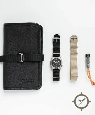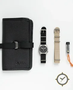 A Field watch, crafted from stainless steel featuring a black dial with a unique matte textured / grained finish finish.