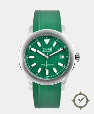 A Dive watch with a bold 47.5mm presence on the wrist, crafted from stainless steel featuring a green dial with a unique honeycomb (hexagonal) finish.