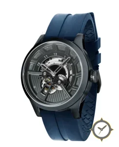 A Skeleton watch with a bold 45.5mm presence on the wrist, crafted from stainless steel featuring a gray dial with a unique brushed metallic with open-work/skeleton cutouts finish.