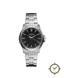 A Dress watch with a vintage-inspired 31mm case, crafted from stainless steel featuring a black dial with a unique matte finish.
