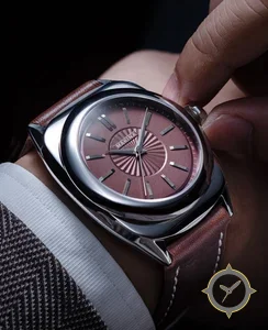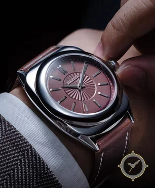 A Dress watch, crafted from stainless steel featuring a brown dial with a unique sunburst / radial guilloché finish.