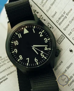 A Pilot watch with a versatile 38mm case, that suits most wrists, crafted from stainless steel featuring a black dial with a unique matte finish.