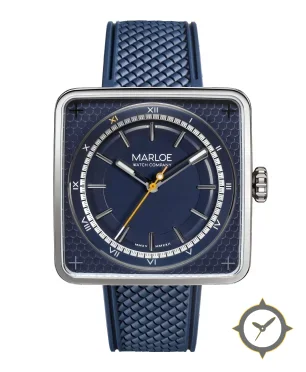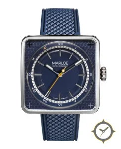 A Sports watch with a bold 47.5mm presence on the wrist, crafted from stainless steel featuring a blue dial with a unique honeycomb outer ring with smooth recessed central disc finish.
