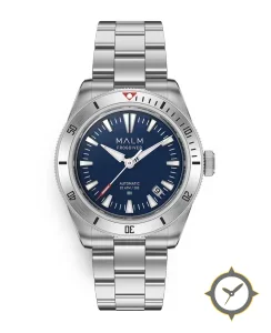 A Dive watch with a vintage-inspired 34.5mm case, crafted from stainless steel featuring a blue dial with a unique lacquer finish.