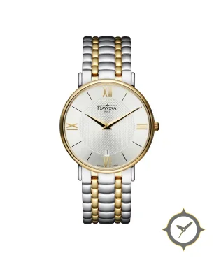 A Dress watch with a bold 42.5mm presence on the wrist, crafted from stainless steel featuring a white dial with a unique guilloché (textured centre, smooth outer ring) finish.