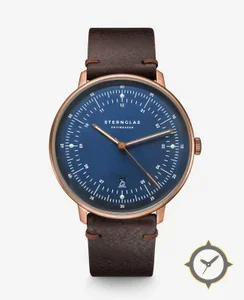 A Minimalist watch with a bold 48.5mm presence on the wrist, crafted from stainless steel featuring a blue dial with a unique matte finish.