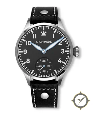 A Pilot watch with a bold 47mm presence on the wrist, crafted from stainless steel featuring a black dial with a unique matte finish.