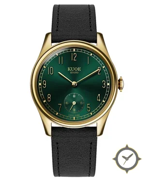 A Dress watch with a vintage-inspired 36.5mm case, crafted from gold featuring a green dial with a unique sunburst (sunray) finish finish.