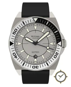 A Dive watch with a bold 46mm presence on the wrist, crafted from stainless steel featuring a gray dial with a unique sandblasted finish.