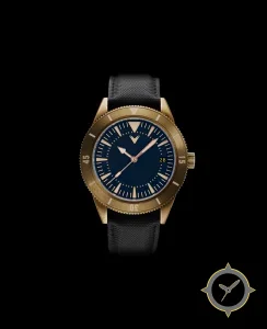 A Dive watch with a vintage-inspired 33.5mm case, crafted from bronze featuring a blue dial with a unique matte finish.