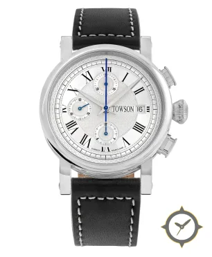 A Chronograph watch, crafted from stainless steel featuring a white dial with a unique guilloché/engine-turned with brushed outer ring finish.