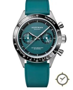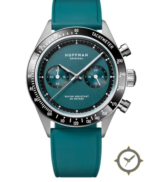 A Chronograph watch with a versatile 40mm case, that suits most wrists, crafted from stainless steel featuring a turquoise dial with a unique matte grained / sandblasted texture finish.