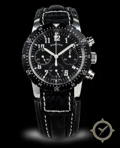 A Pilot watch with a bold 43mm presence on the wrist, crafted from stainless steel featuring a black dial with a unique matte finish.