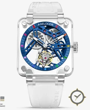 A Skeleton watch with a versatile 38.5mm case, that suits most wrists, crafted from resin featuring a blue dial with a unique skeleton/open-worked finish.