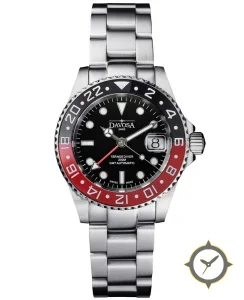 A Dive watch with a vintage-inspired 34mm case, crafted from stainless steel featuring a black dial with a unique glossy finish.