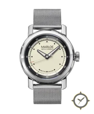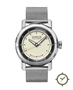 A Vintage watch with a vintage-inspired 35mm case, crafted from stainless steel featuring a white dial with a unique matte finish.