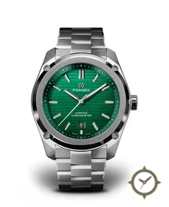 A Sports watch with a bold 43mm presence on the wrist, crafted from stainless steel featuring a green dial with a unique horizontal brushed/striped texture finish.