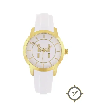 A Minimalist watch with a vintage-inspired 36.5mm case, crafted from gold featuring a white dial with a unique matte finish.