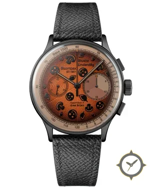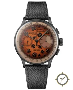 A Chronograph watch with a versatile 41mm case, that suits most wrists, crafted from stainless steel featuring a brown dial with a unique textured, grained/hammered copper finish with slight sunburst finish.