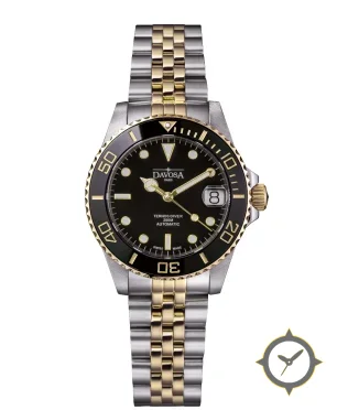 A Dive watch with a vintage-inspired 29.5mm case, crafted from stainless steel featuring a black dial with a unique glossy lacquer finish.