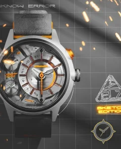 A Skeleton watch with a vintage-inspired 36.5mm case, crafted from stainless steel featuring a silver dial with a unique brushed metal with open-work/skeleton elements finish.