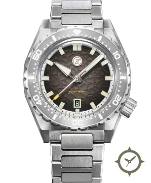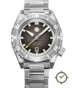 A Dive watch with a bold 52mm presence on the wrist, crafted from stainless steel featuring a brown dial with a unique hammered/pebble textured finish finish.