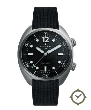 A Dive watch with a bold 41.5mm presence on the wrist, crafted from stainless steel featuring a black dial with a unique matte grained/pebble texture finish.