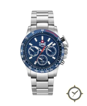 A Chronograph watch with a bold 51mm presence on the wrist, crafted from stainless steel featuring a blue dial with a unique waffle / embossed grid pattern finish.