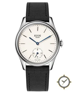 A Dress watch with a vintage-inspired 29mm case, crafted from stainless steel featuring a white dial with a unique matte finish.